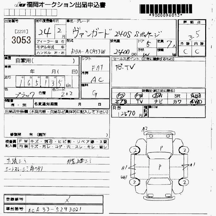 Год выпуска2012 Пробег 165 000 км КузовACA33W Комплектация4WD 240S S PACKAGE 7 PERSON