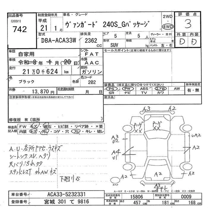 Год выпуска2009 Пробег 211 000 км КузовACA33W Комплектация4WD 240S_G PACKAGE