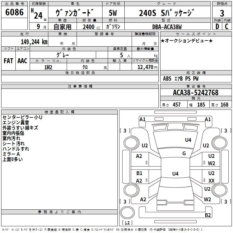 Год выпуска2012 Пробег 149 000 км КузовACA38W Комплектация240S S PACKAGE