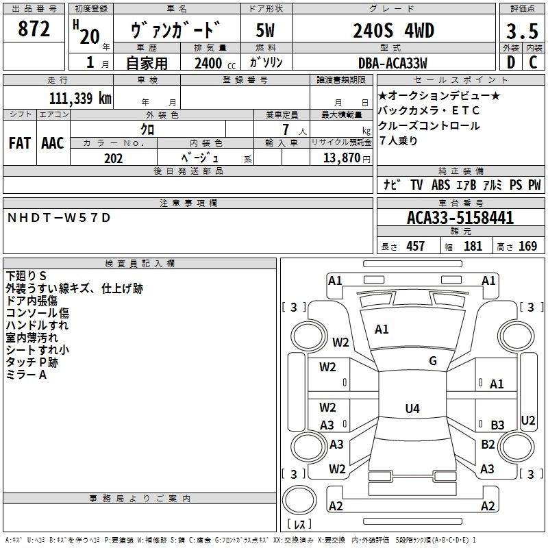 TOYOTA VANGUARD 2008 г., лот № 872