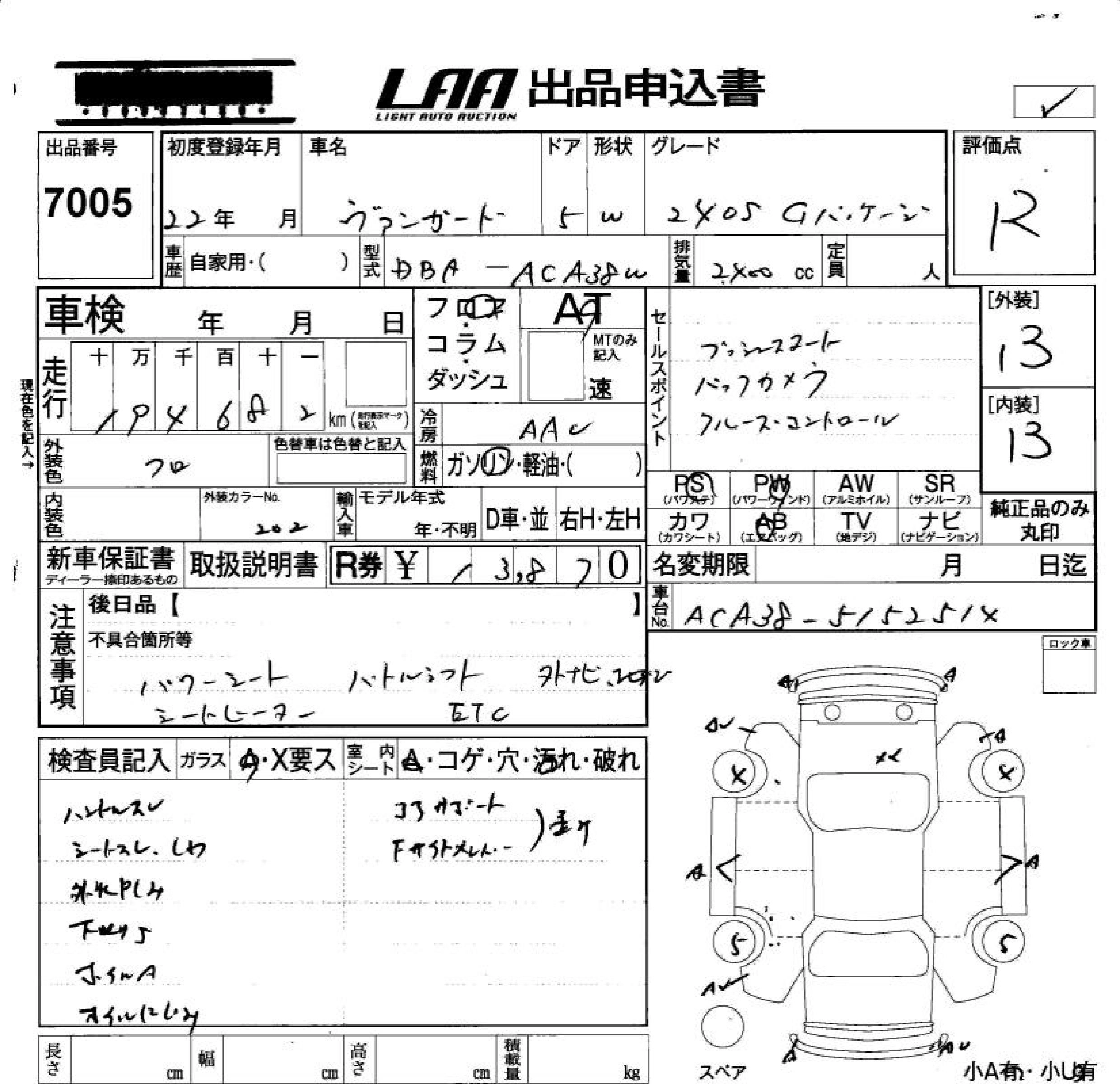 Статус продан Лот 7005 Аукцион LAA Okayama Дата аукциона 13.03.2026