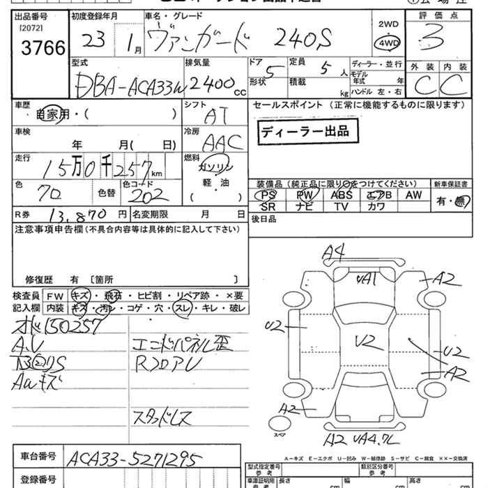 Год выпуска2011 Пробег 150 000 км КузовACA33W Комплектация4WD 240S