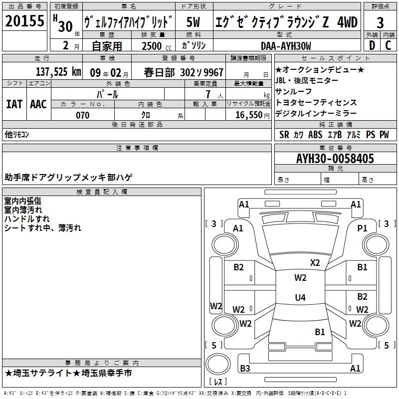 TOYOTA VELLFIRE HYBRID 2018 г., лот № 20155