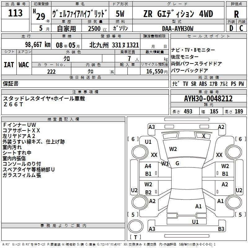 TOYOTA VELLFIRE HYBRID 2017 г., лот № 113