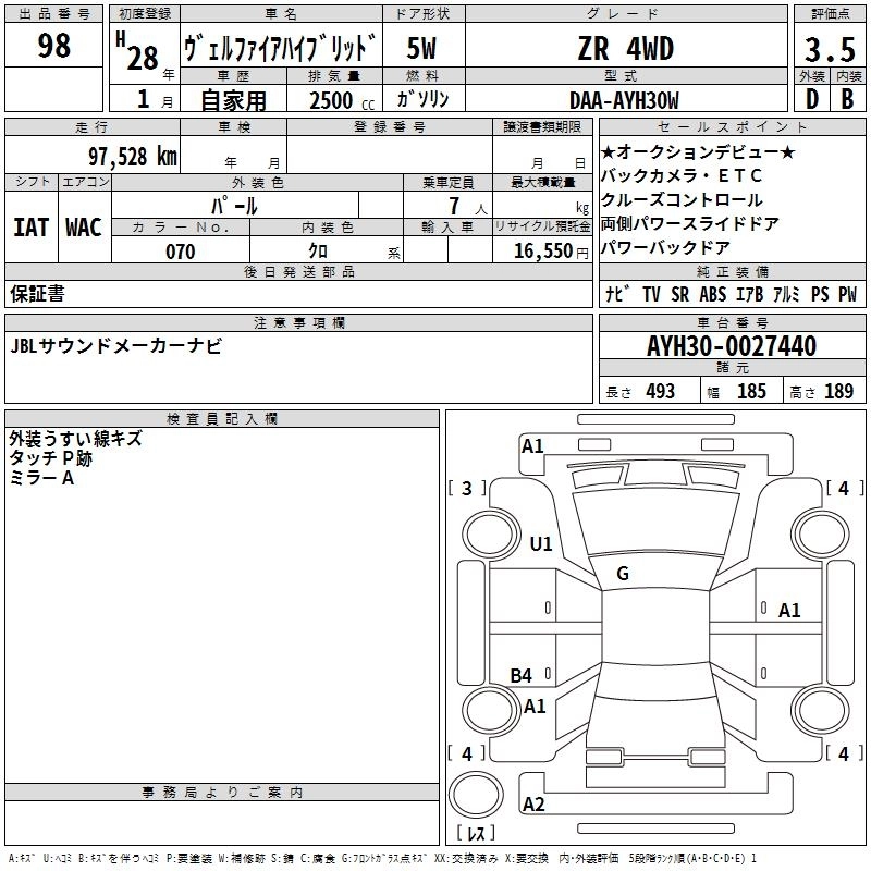 TOYOTA VELLFIRE HYBRID 2016 г., лот № 98