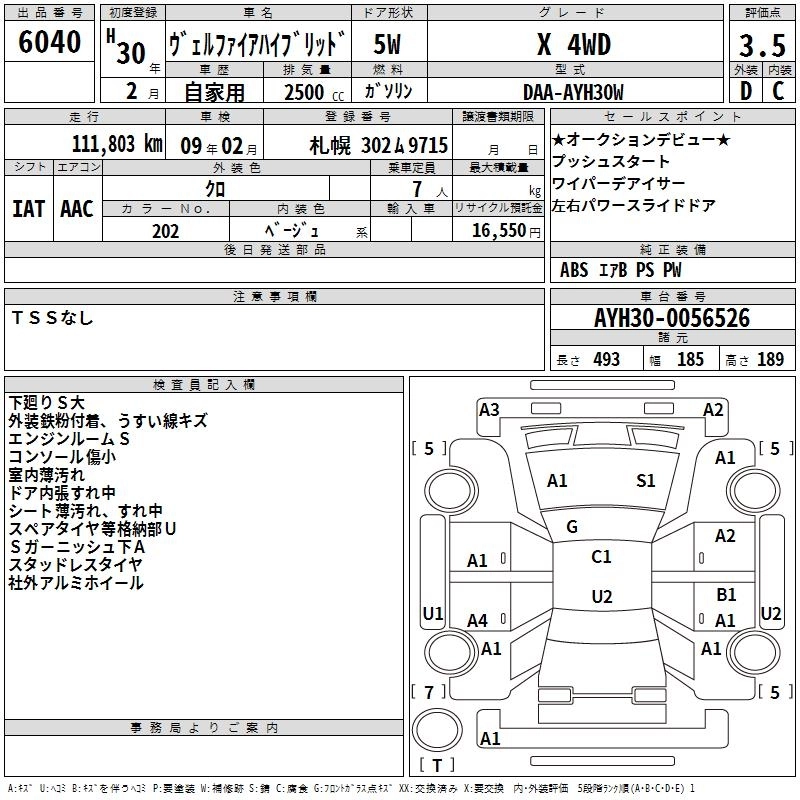 TOYOTA VELLFIRE HYBRID 2018 г., лот № 6040