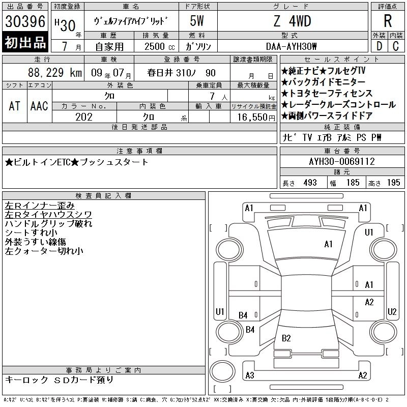 TOYOTA VELLFIRE HYBRID 2018 г., лот № 30396
