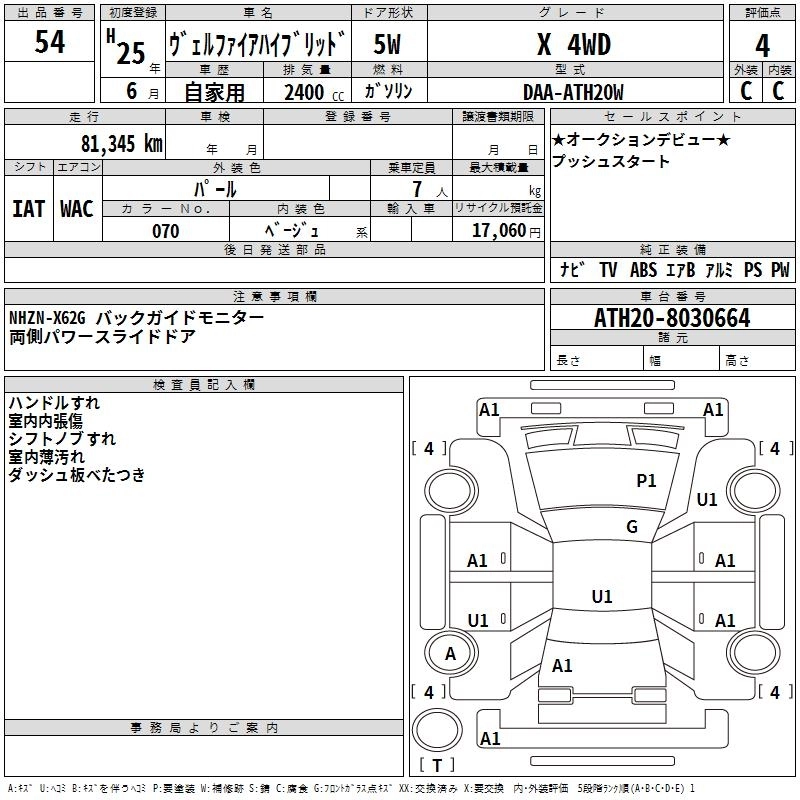 TOYOTA VELLFIRE HYBRID 2013 г., лот № 54