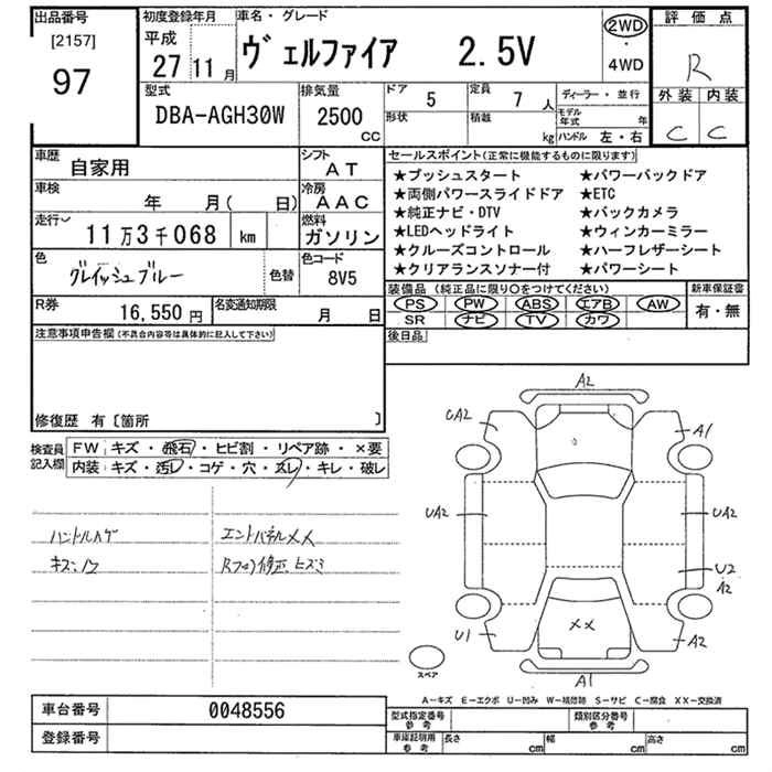TOYOTA VELLFIRE 2015 г., лот № 97