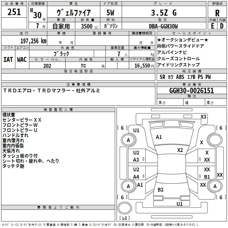 TOYOTA VELLFIRE 2018 г., лот № 251