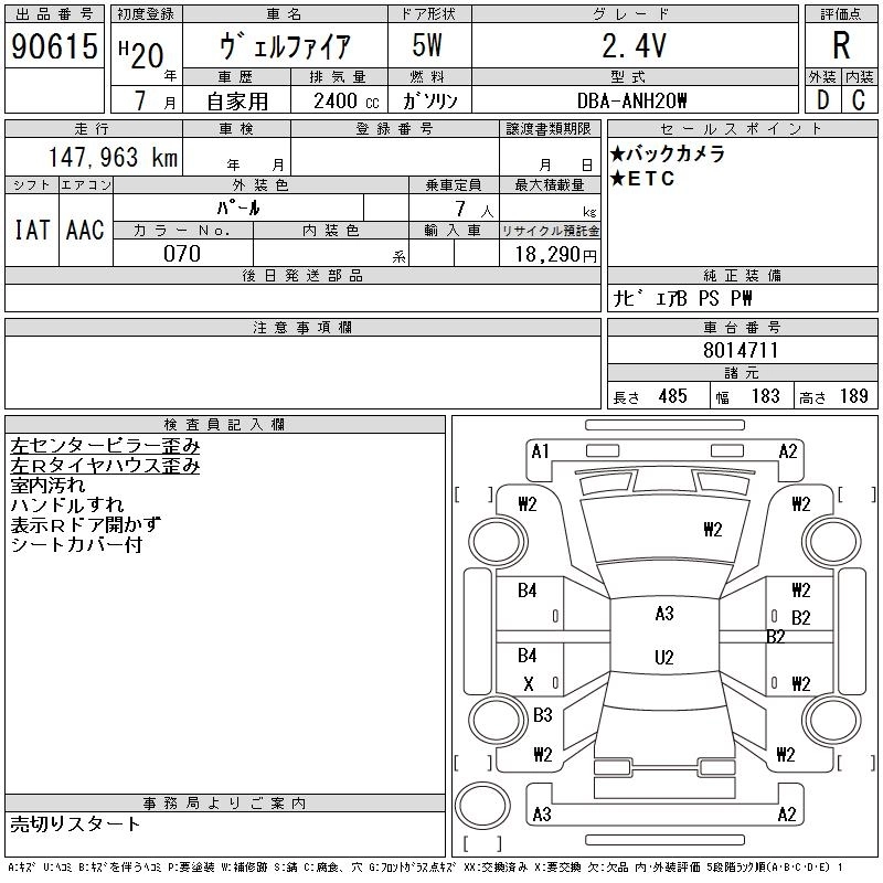 TOYOTA VELLFIRE 2008 г., лот № 90615