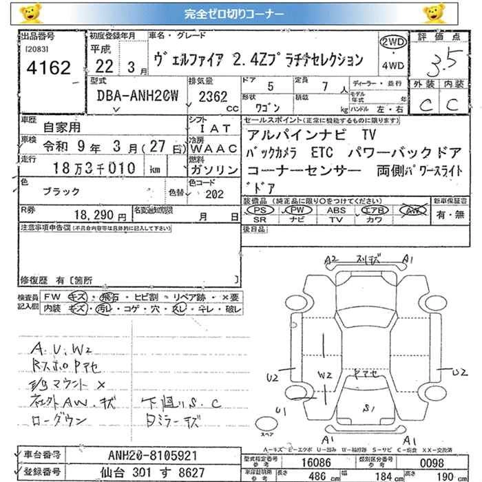 TOYOTA VELLFIRE 2010 г., лот № 4162