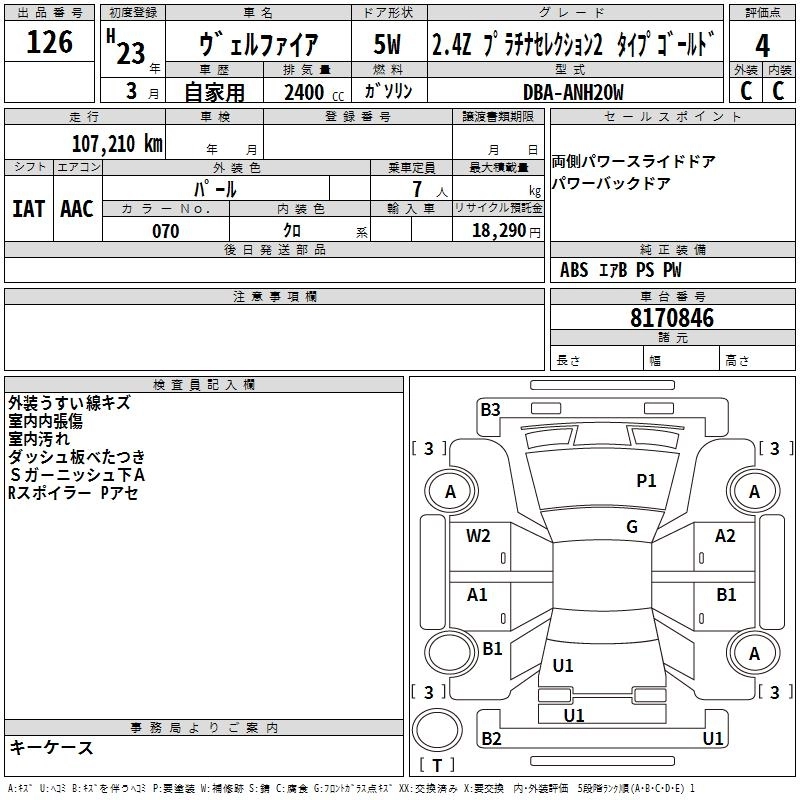 TOYOTA VELLFIRE 2011 г., лот № 126