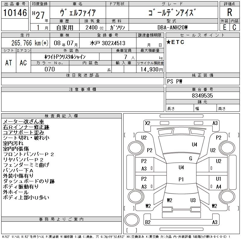 TOYOTA VELLFIRE 2015 г., лот № 10146