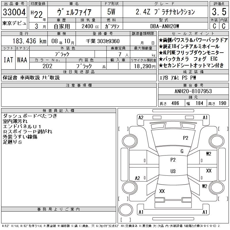 TOYOTA VELLFIRE 2010 г., лот № 33004