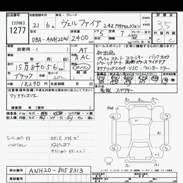 Год выпуска2009 Пробег 158 000 км КузовANH20W Комплектация2.4Z PLATINUM SELECTION