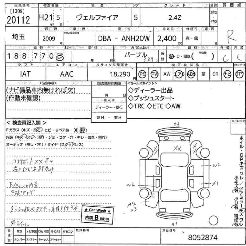 TOYOTA VELLFIRE 2009 г., лот № 20112