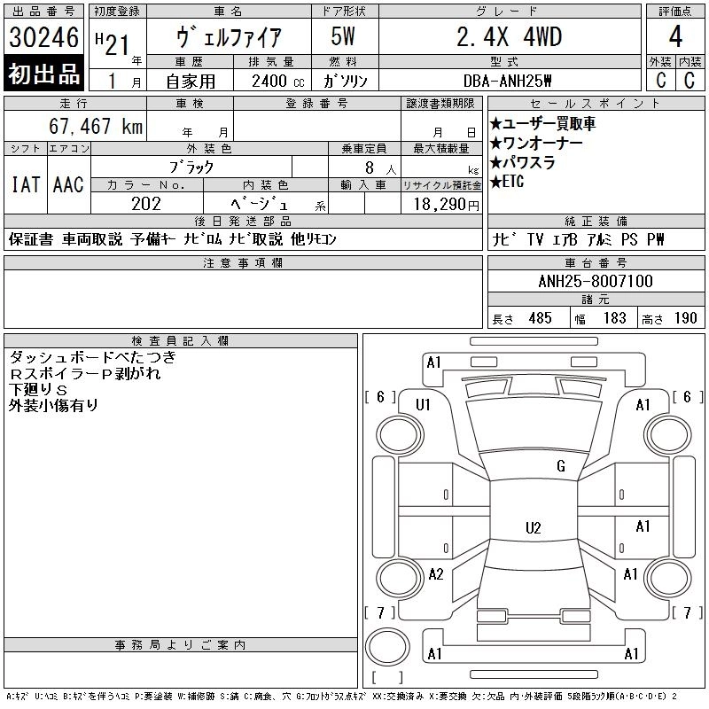 TOYOTA VELLFIRE 2009 г., лот № 30246