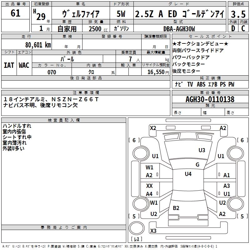 TOYOTA VELLFIRE 2017 г., лот № 61