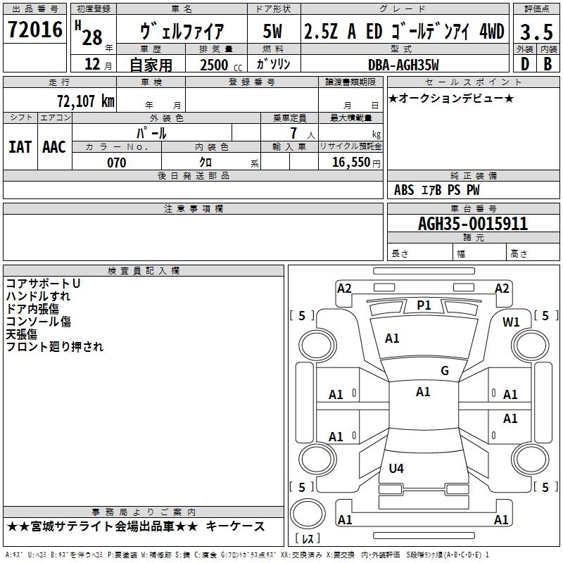 TOYOTA VELLFIRE 2016 г., лот № 72016