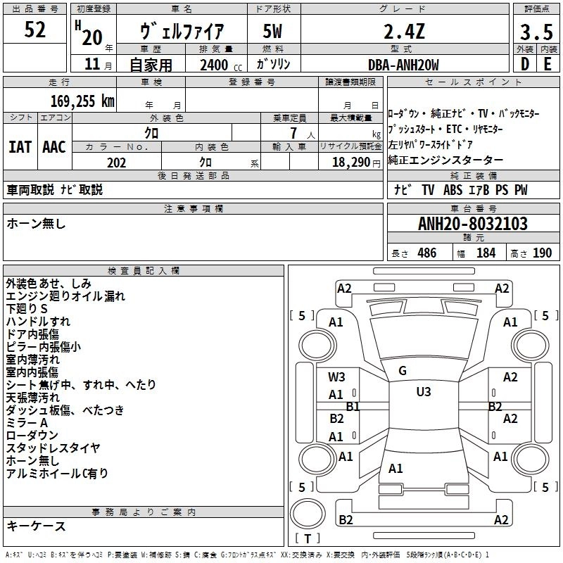 TOYOTA VELLFIRE 2008 г., лот № 52