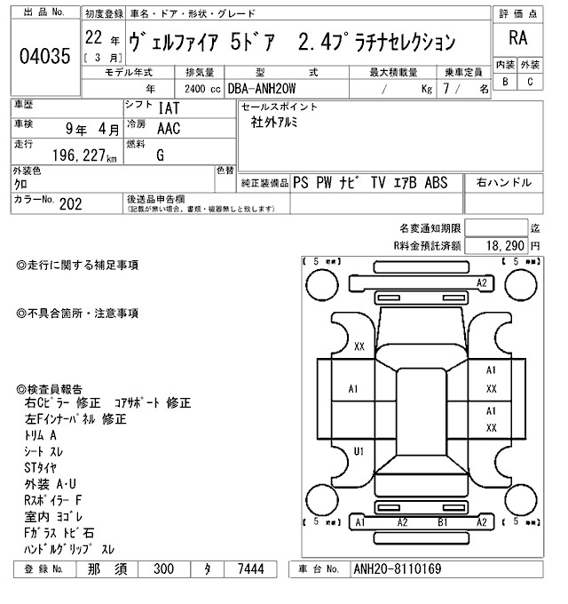 TOYOTA VELLFIRE 2010 г., лот № 4035