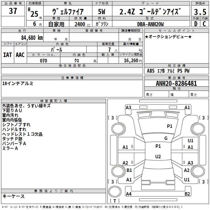 TOYOTA VELLFIRE 2013 г., лот № 37