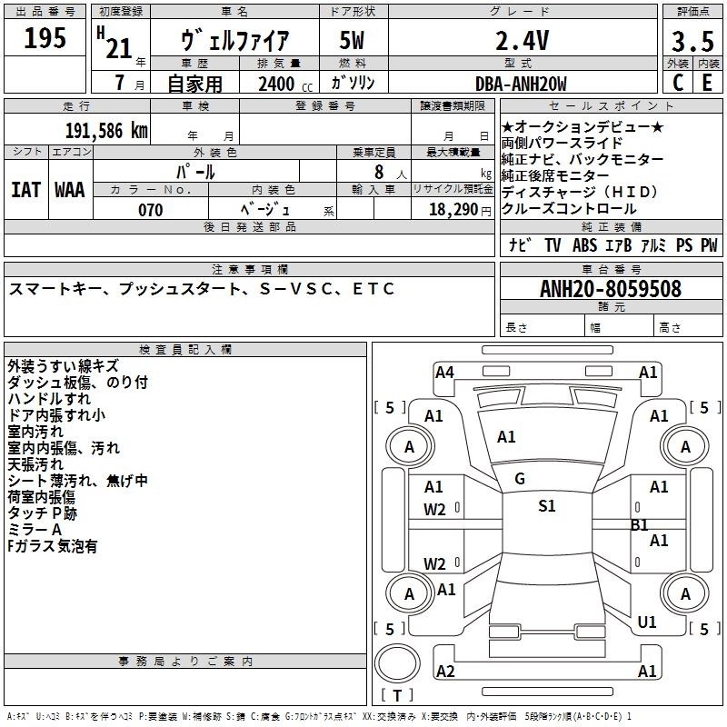 TOYOTA VELLFIRE 2009 г., лот № 195