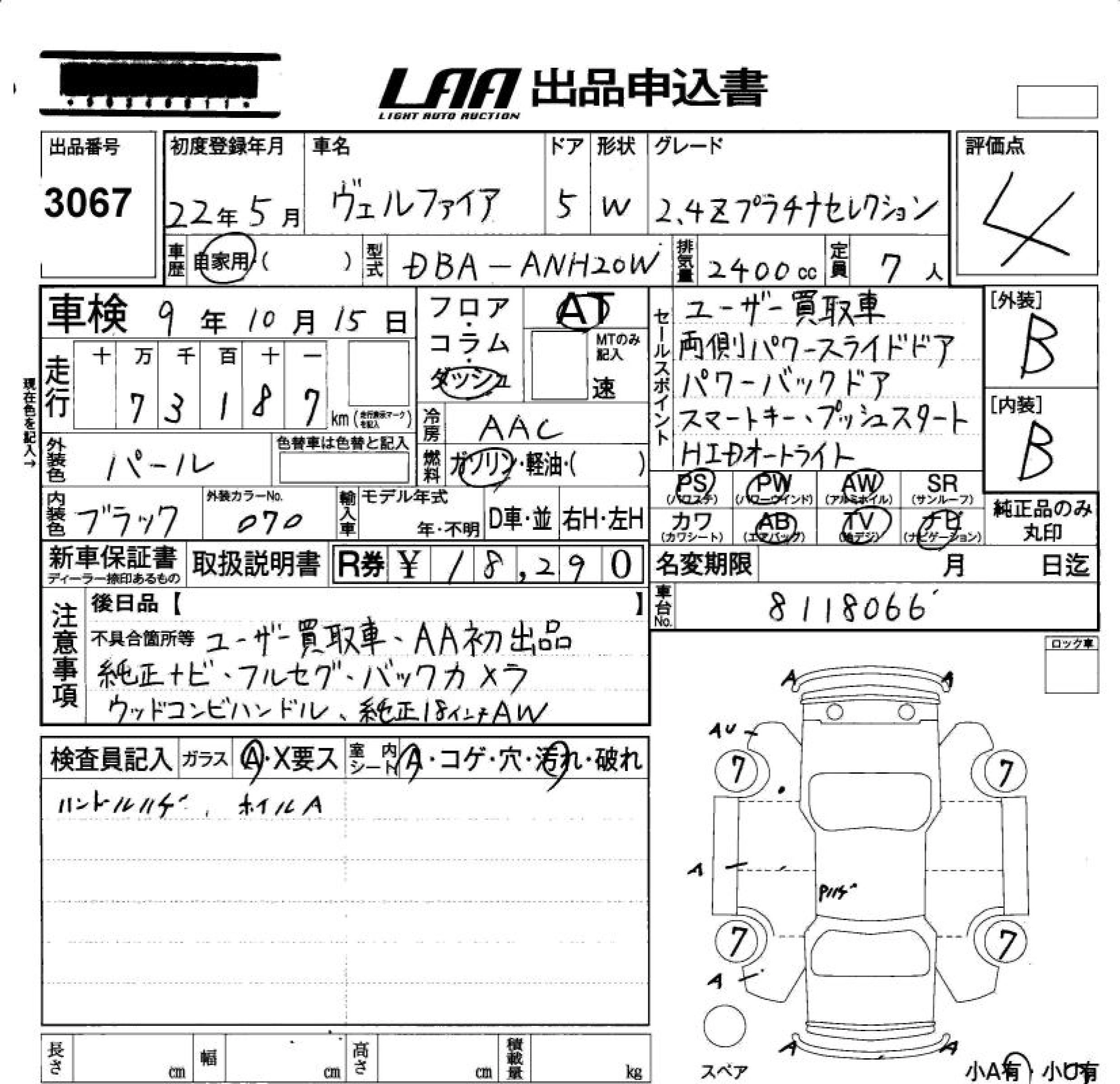 Статус не продан Лот 3067 Аукцион LAA Okayama Дата аукциона 23.01.2026