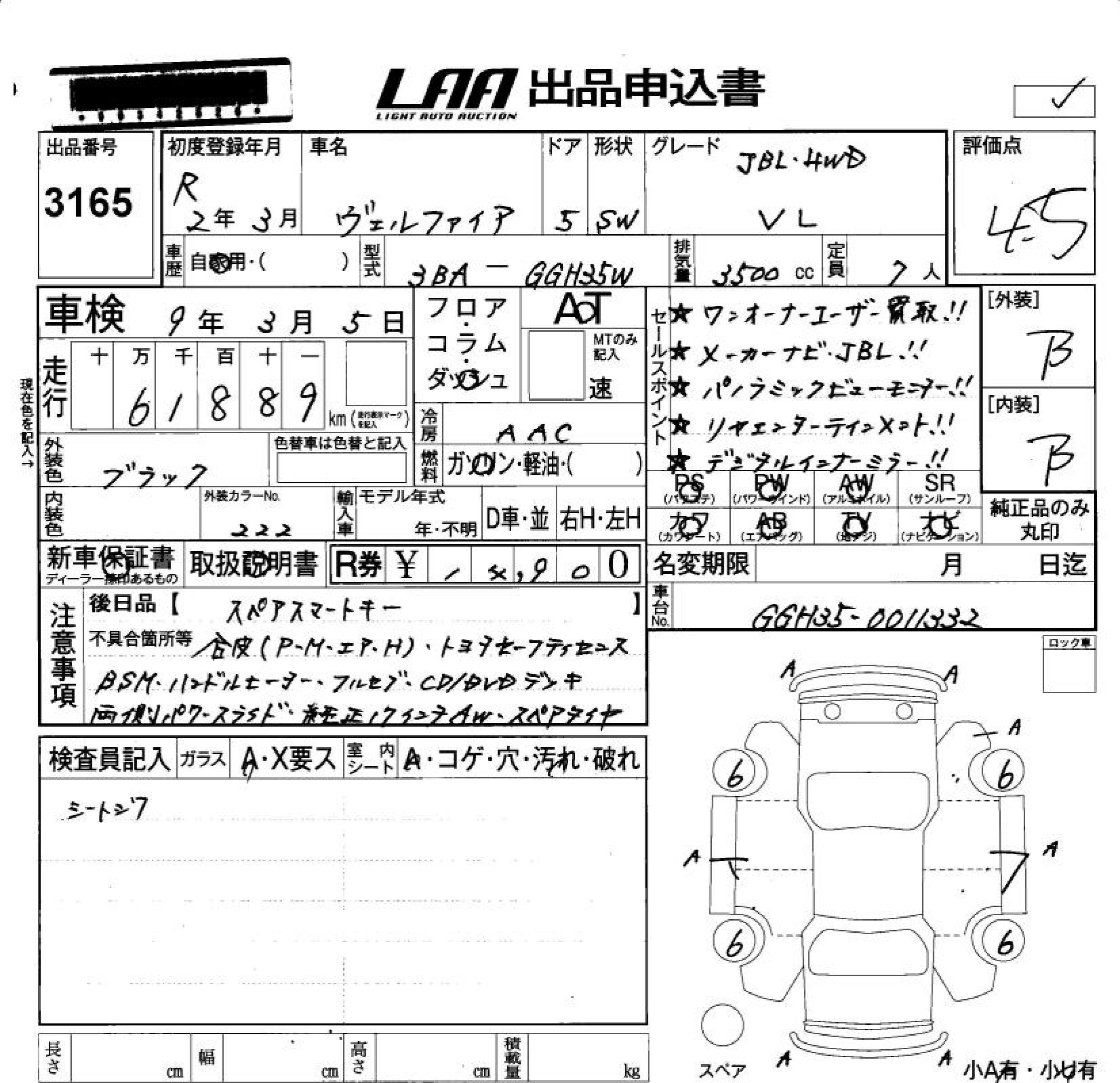 TOYOTA VELLFIRE 2020 г., лот № 3165