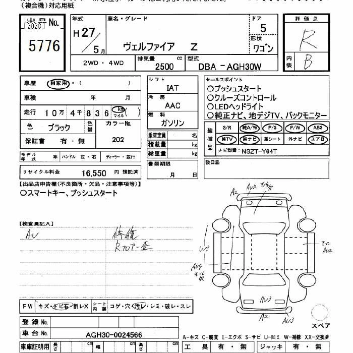 TOYOTA VELLFIRE 2015 г., лот № 5776