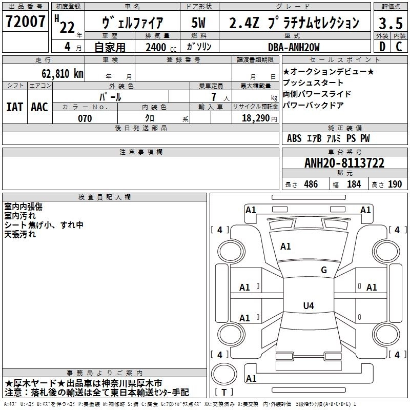 TOYOTA VELLFIRE 2010 г., лот № 72007