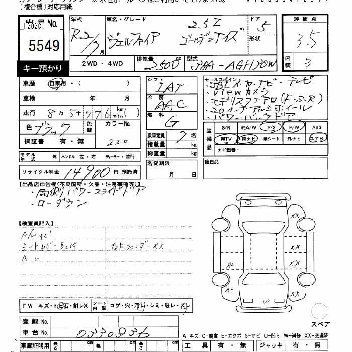 TOYOTA VELLFIRE 2020 г., лот № 5549