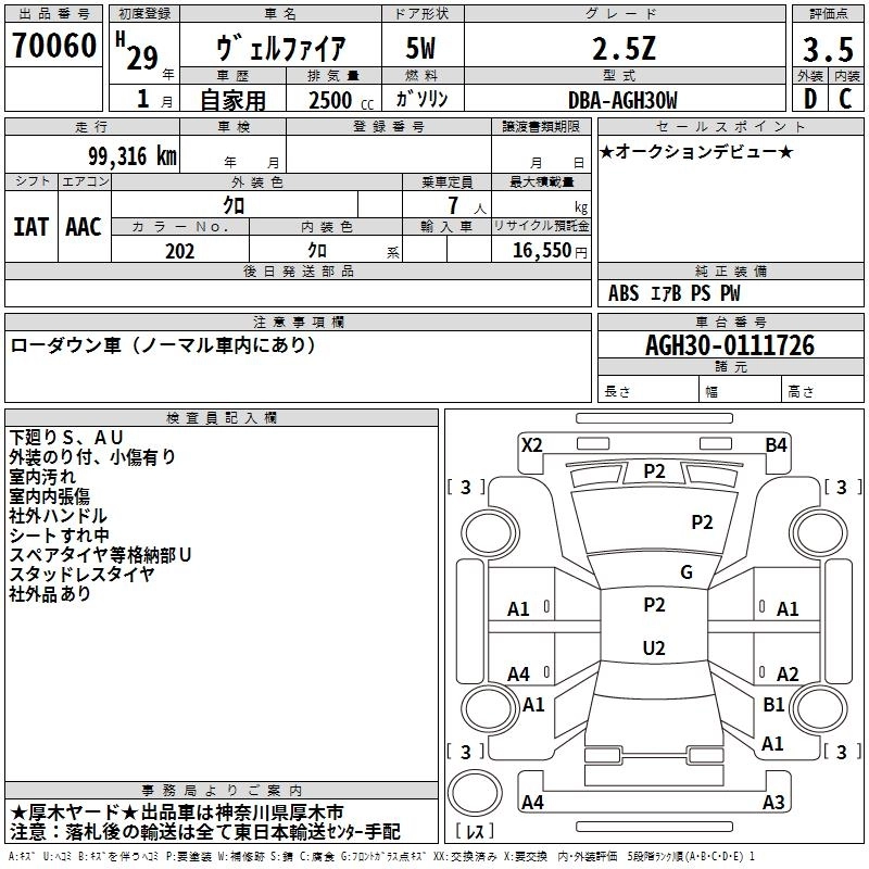 TOYOTA VELLFIRE 2017 г., лот № 70060