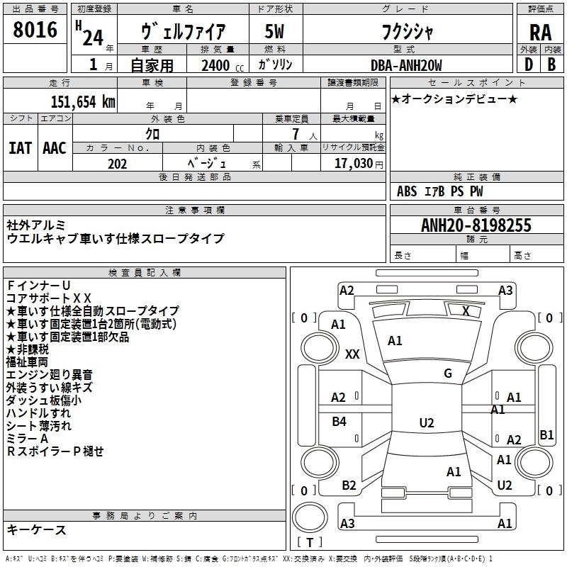 TOYOTA VELLFIRE 2012 г., лот № 8016