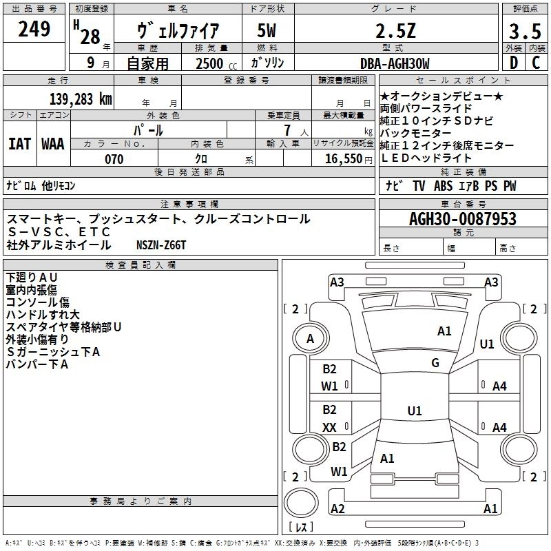 Год выпуска2016 Пробег 139 000 км КузовAGH30W Комплектация2.5Z