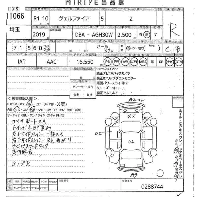 TOYOTA VELLFIRE 2019 г., лот № 11066