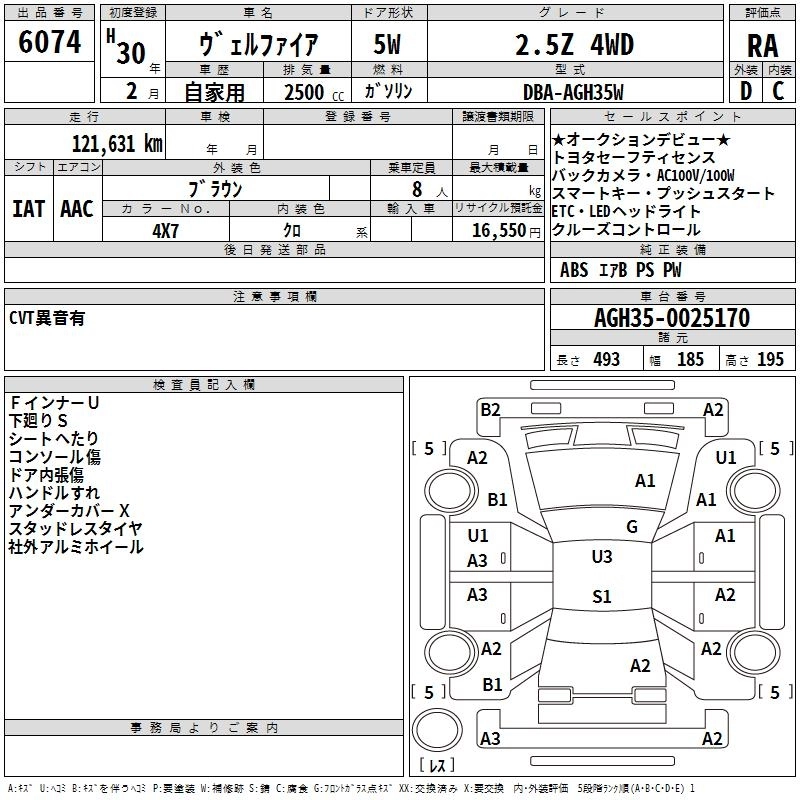 Год выпуска2018 Пробег 122 000 км КузовAGH35W Комплектация2.5Z 4WD