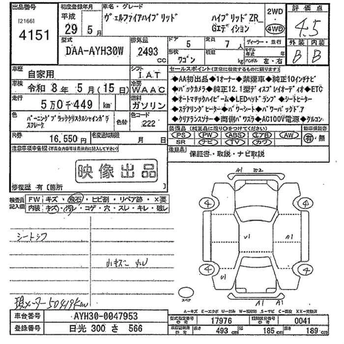 TOYOTA VELLFIRE 2017 г., лот № 4151