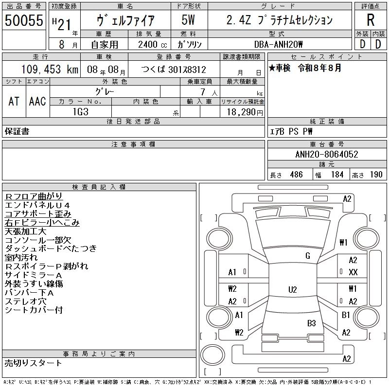 TOYOTA VELLFIRE 2009 г., лот № 50055
