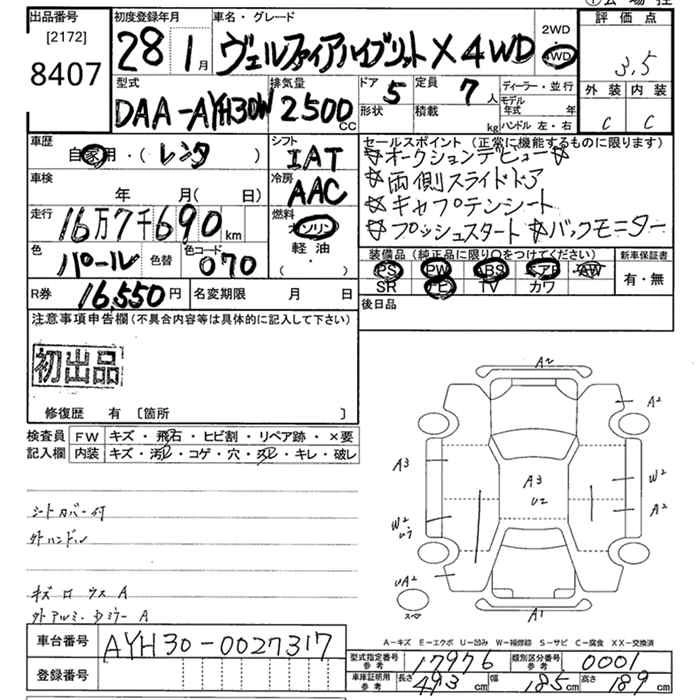 TOYOTA VELLFIRE 2016 г., лот № 8407