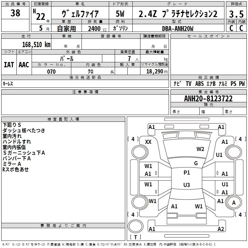 TOYOTA VELLFIRE 2010 г., лот № 38