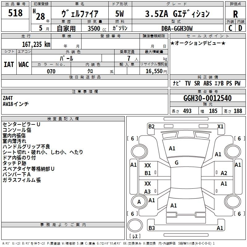 TOYOTA VELLFIRE 2016 г., лот № 518