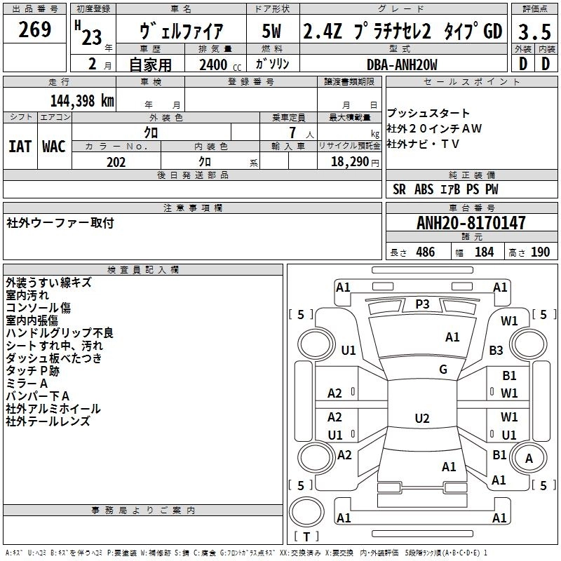 TOYOTA VELLFIRE 2011 г., лот № 269