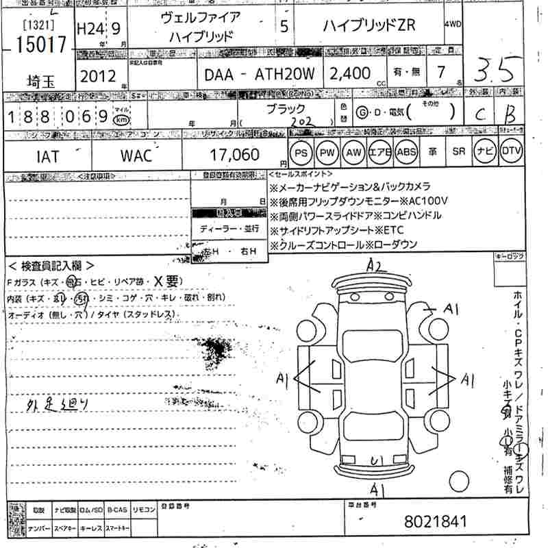 TOYOTA VELLFIRE 2012 г., лот № 15017