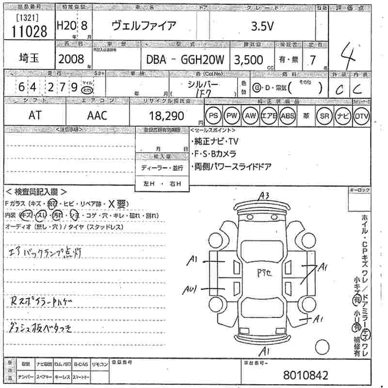 TOYOTA VELLFIRE 2008 г., лот № 11028