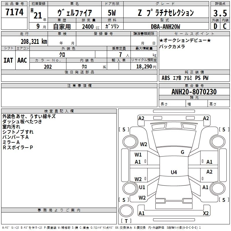 TOYOTA VELLFIRE 2009 г., лот № 7174