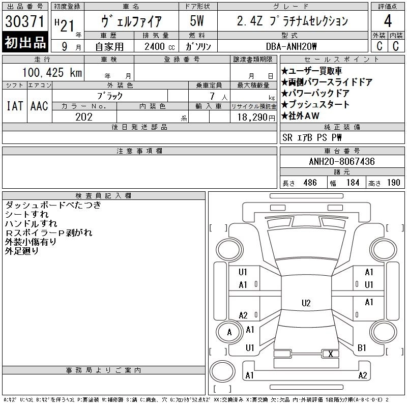 TOYOTA VELLFIRE 2009 г., лот № 30371