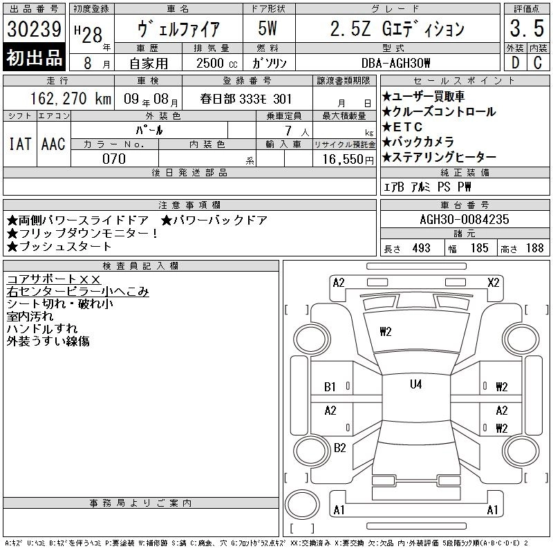 TOYOTA VELLFIRE 2016 г., лот № 30239