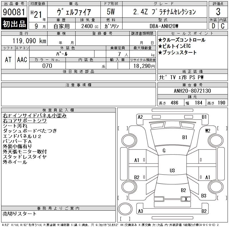 TOYOTA VELLFIRE 2009 г., лот № 90081